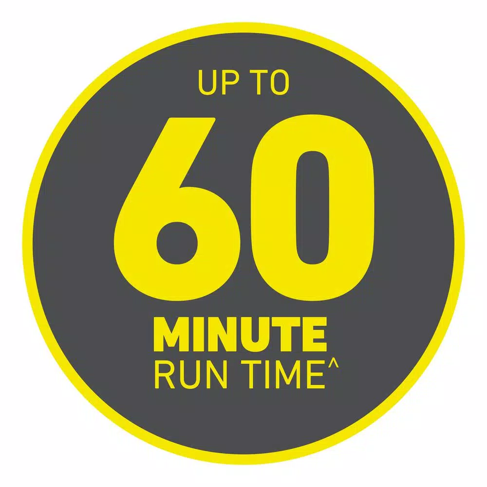- Control speed with the variable speed trigger: lower speed = longest runtime (up to 60 minutes); higher speed = more power; turbo speed = more power, less runtime (up to 10 minutes runtime)
